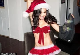 Apparently Naya Rivera really loves Christmas or has a thing for old guys with white beards.